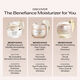 - 用小勺舀两颗珍珠大小的量,然后将面霜点在面部的五个点:前额、鼻子、下巴和双颊。