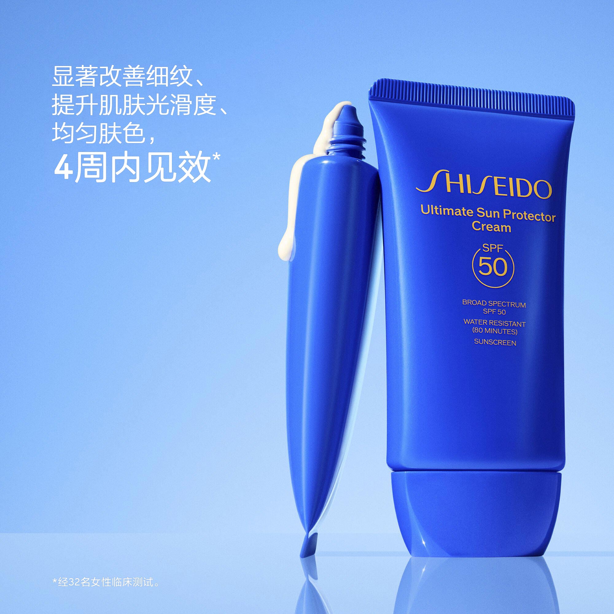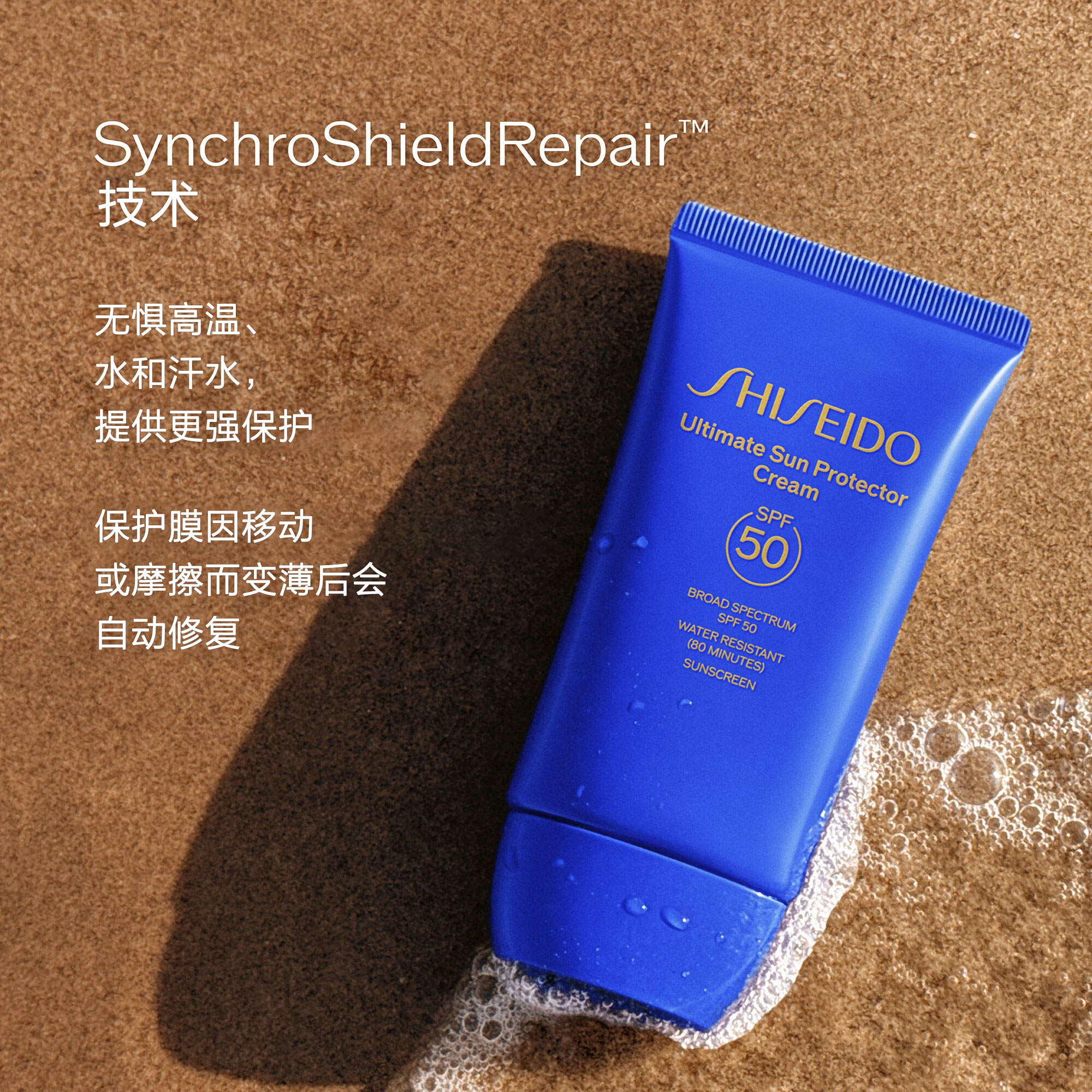 • 广谱SPF 50+防晒霜可抵御UVA/UVB射线
