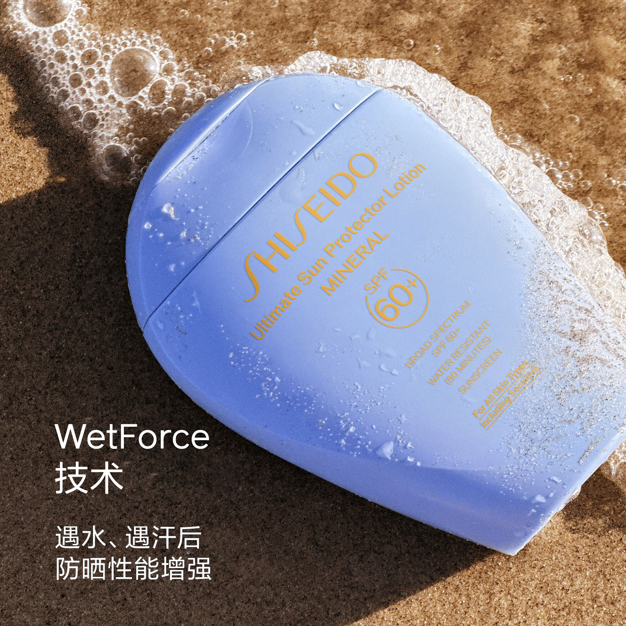 **要让WetForce技术发挥功效,在肌肤上涂抹防晒霜后,让其与水或汗液接触30分钟。