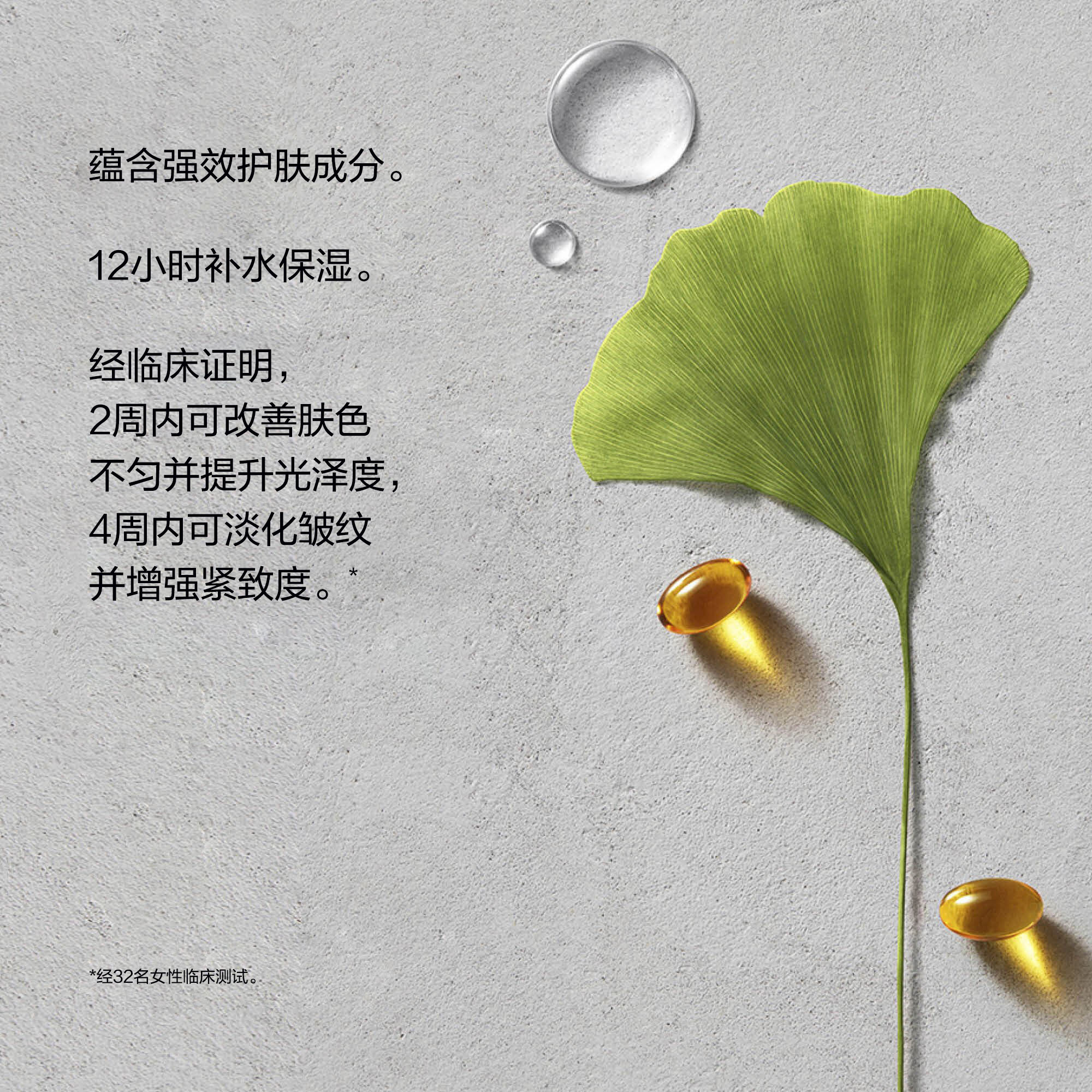 • 经临床验证,仅需2周即可改善肤色不匀和提亮肤色,4周改善皱纹和提升肌肤紧致度*³
